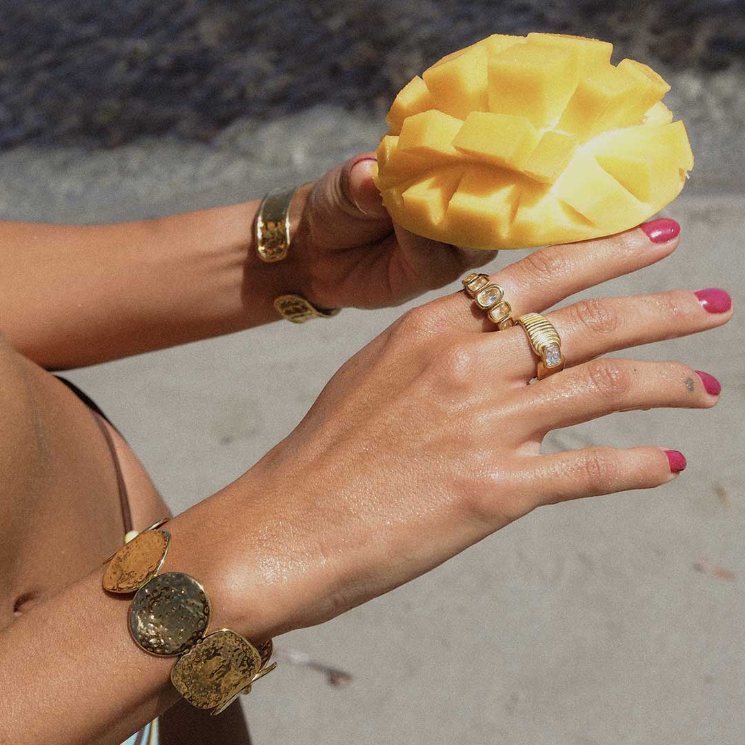 Our jewellery, created with 18k gold plating infused on a Stainless Steel base, can be worn in water; however, we encourage you to follow these simple instructions to get the most wear out of your LAUKONIK jewellery pieces.
